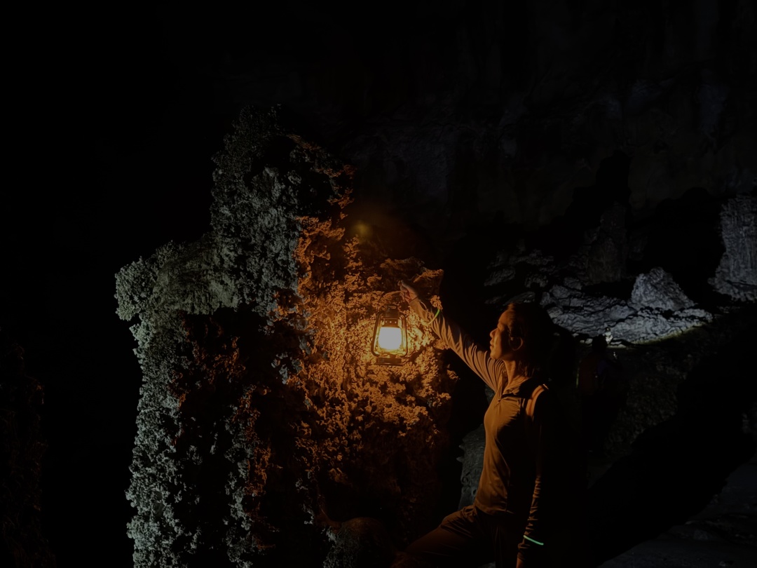 各种流石坝,美不胜收。溶洞里到处都石英砂晶石,用头灯一照,星光点点,如满天繁星