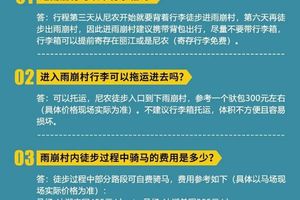 3. 骡马/乘车费用: 雨崩徒步过程中,个人自行骑马费、乘汽车、摩托车等(费用景区均有公示,服务不属于俱乐部提供,安全及服务问题请驴友自理);