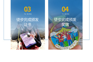物料:雨衣1件、登山杖1根(免费租借)、奖牌1个、证书1张;魔术头巾