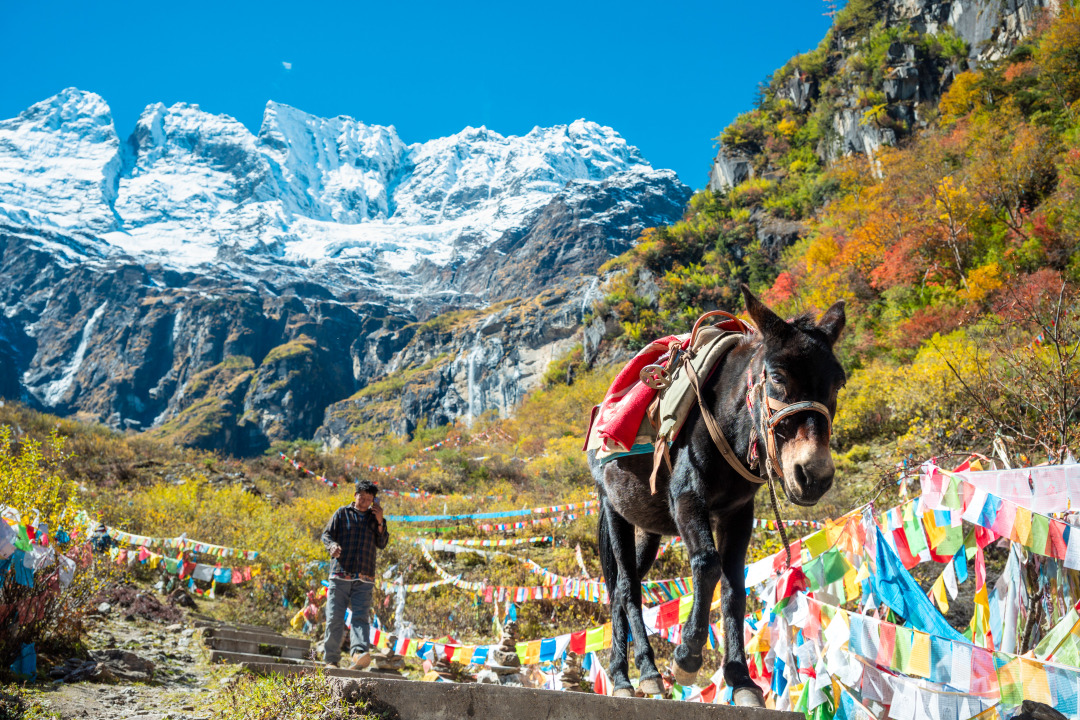 清晨我们将从雨崩上村出发,一路徒步到达冰湖。