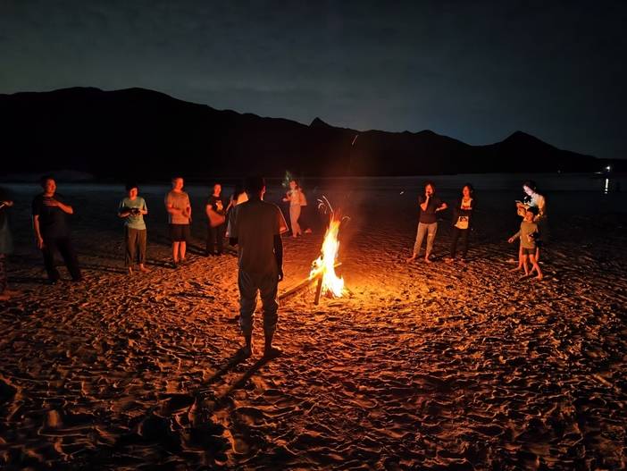 18:00 晚上如果想篝火的队友,由领队统筹指引队友自行收集枯枝自行篝火,也可以到士多KTV唱歌,P酒,在沙滩上闭上眼睛,听海浪声音,数漫天星星,等海边日出。(如果在沙滩营地露营的小伙伴,晚上可能会有牛牛来跟你做邻居,请勿害怕)