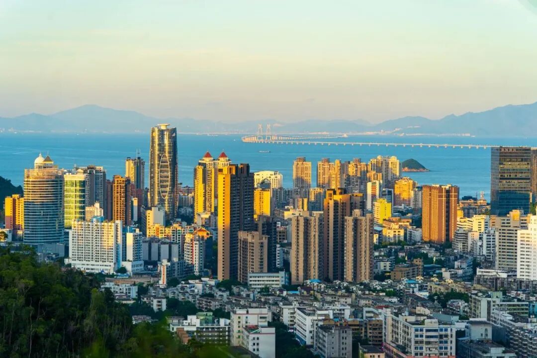 可鸟瞰月贝、珠港澳大桥、海滩、