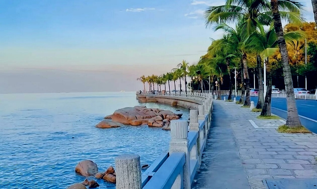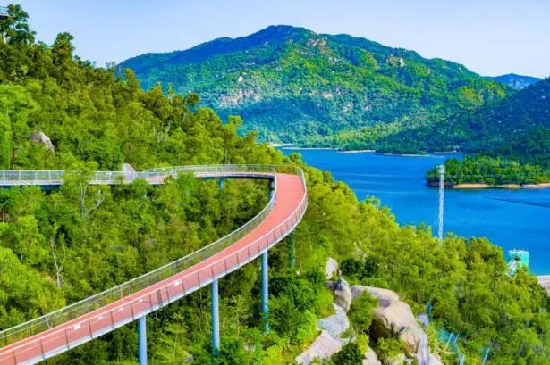 岛上精细的绿化妆点着滨海绿道非常唯美上镜