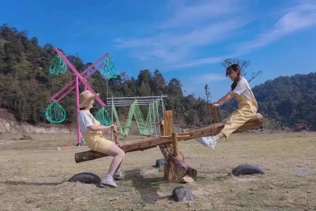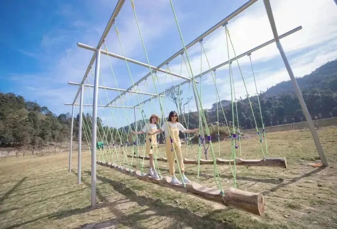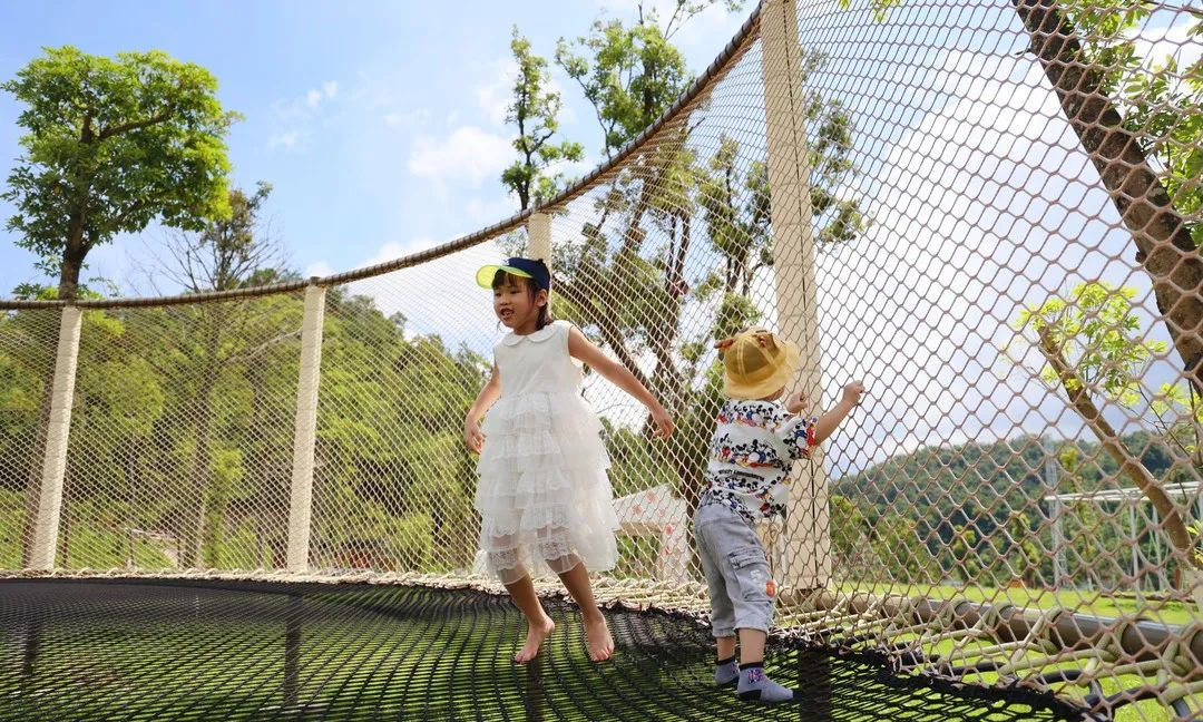 过了“咩咩谷”,到“魔法森林”,有各种网红秋千、空中蹦床、超长滑梯、童乐火车等娱乐项目可休闲体验。