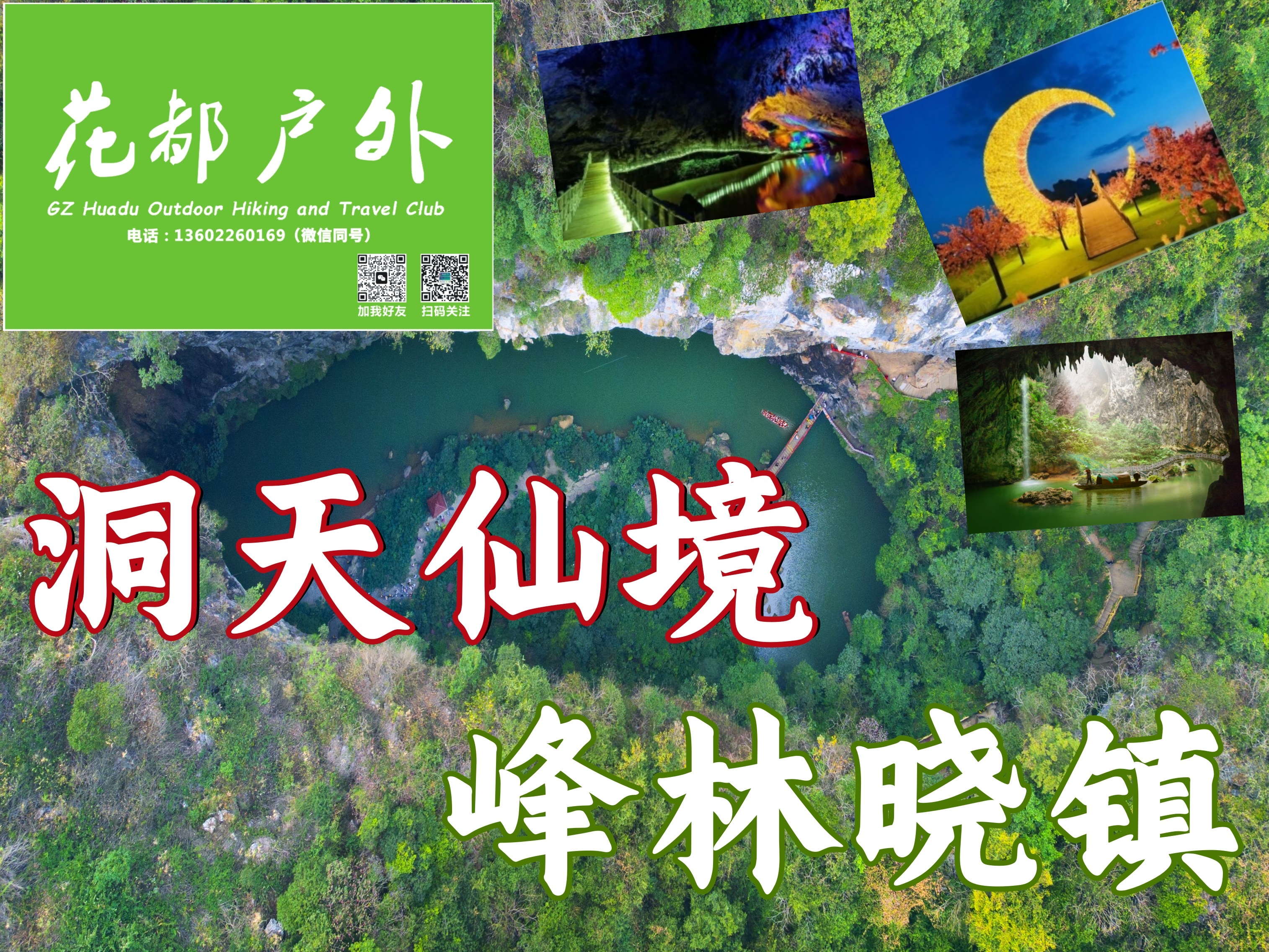 费用包含:花都豪华空调大巴往返+专业户外领队保障+活动策划+简易医疗用品,赠户外运动保险,大小同价,峰林晓镇+洞天仙境门票+游船+特色围餐宴席