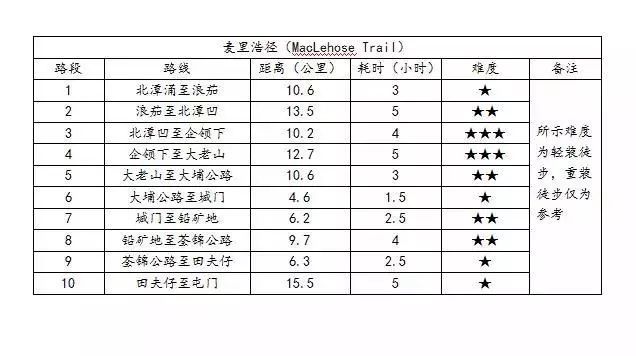 麦理浩径——是香港第一条徒步径,以前香港总督麦理浩(Maclehose)爵士命名的徒步线路,分10段,全长100公里,于 1979年10月26日正式启用,曾获国家地理学会点名为全球最佳徒步径之一。