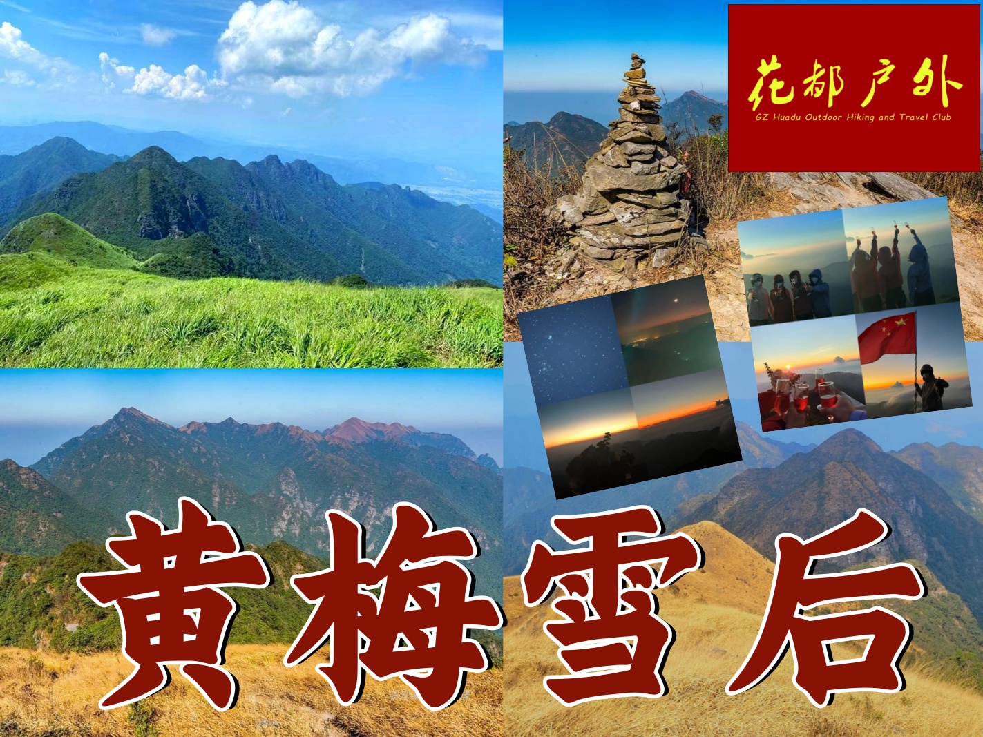“黄-梅-雪-后”是广东十大经典登山穿越路线之一,山高谷深,悬崖峭壁山峰连绵起伏,气势恢宏,幽林奇石、云海草甸,景色壮观,一天连穿,能同时体会到龙斗峰之险、大东山之奇、船底顶之秀