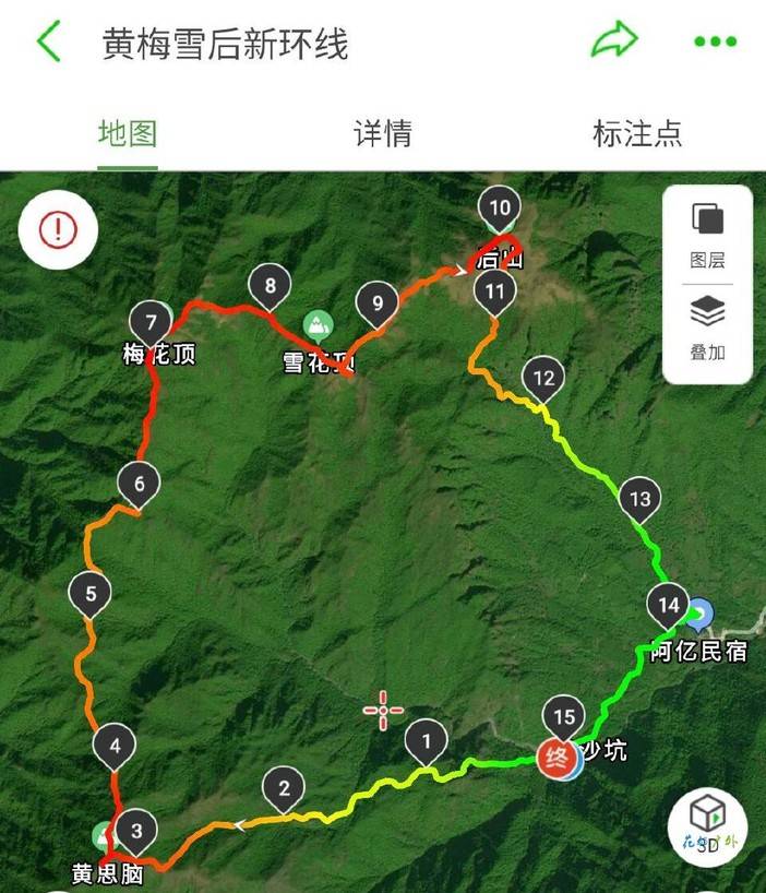 活动路线及路况:全程约14km,运动耗时8小时,休息2小时,累计爬升1389米,沿途有