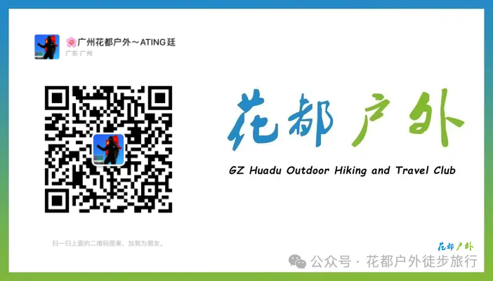 报名缴费、或有对行程有疑问顾虑和对其他活动感兴趣的,欢迎致电咨询“小北客服xiaobei13602260169”或俱乐部负责人“领队ATing阿廷18977596479、领队阿朝AChao17576028389”,请认准俱乐部旗帜:花都户外(广州市花都区最有影响力户外俱乐部之一),添加好友请注明来意“徒步”或“旅行”“合作”,报名成功后,请主动添加小北客服或俱乐部负责人~领队阿廷,说明来意,加入群聊,活动具体安排、通知、照定位等相关信息将会及时发送