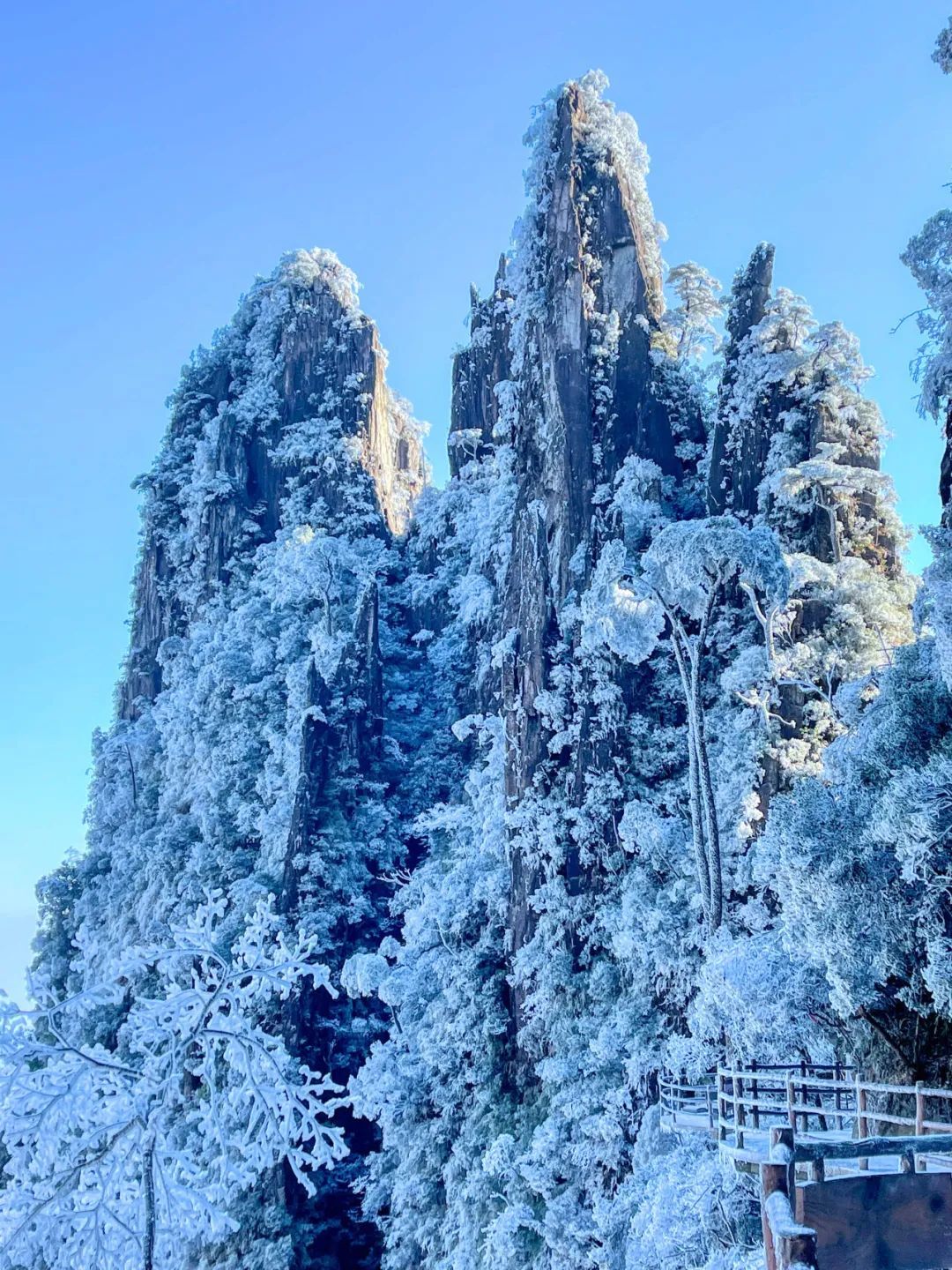 被雾凇装扮后的莽山五指峰配得上所有美好词汇
