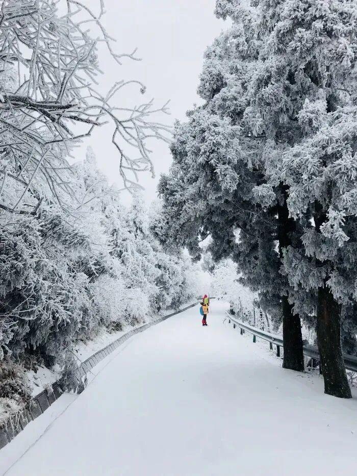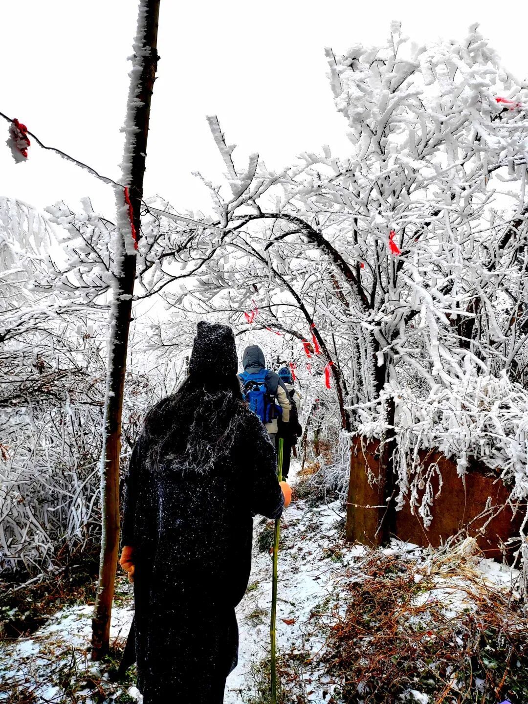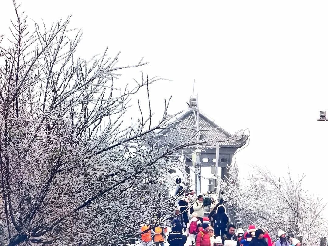 15:10 左右到达南岳衡山游客中心,领队带领大家热身后开始穿越山脊冰雪雾凇精华路线,前往半山亭或延寿亭客栈。(停车场到客栈要走约5公里,不想徒步也可以选择坐景区接驳车上山到半山亭)