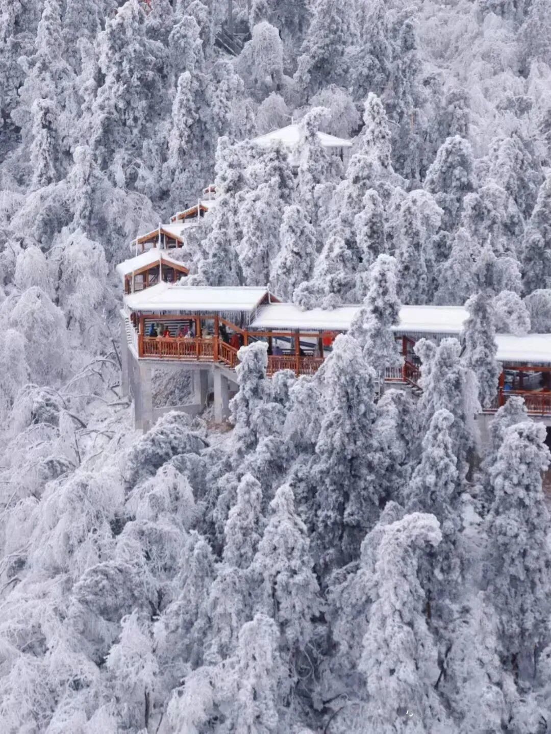 巍巍南岳衡山群峰,一片银色世界,婀娜多姿。