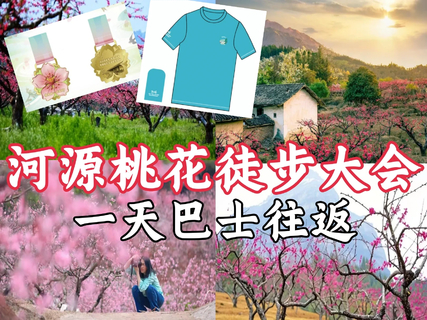 09:00-16:00 徒步开始:上坪镇小水村桃花风光园--山石桃缘--小水廊桥--下湾--虾公塘--桃花谷--梅子斜林场--龙南市杨村镇坪上村,全程15公里,一路桃花一路春光!看风景如画,结束后集合回程广州。