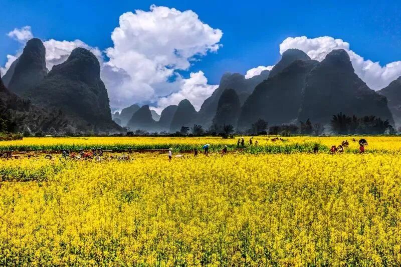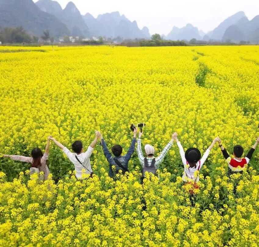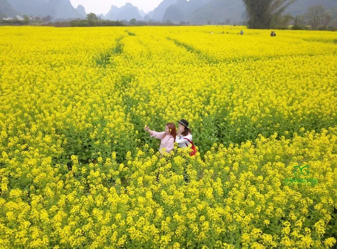 在每年的2-3月,阳朔的千亩油菜花如约而至,