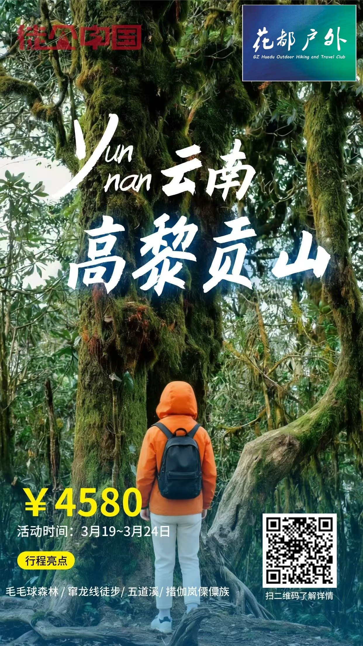 报名缴费可直接识别活动二维码跳转原文、对行程有疑问顾虑和对其他活动感兴趣的,欢迎致电咨询“小北客服xiaobei13602260169”或俱乐部负责人“领队ATing阿廷18977596479、领队阿朝AChao17576028389”,请认准俱乐部旗帜:花都户外(广州市花都区最有影响力户外俱乐部之一),添加好友请注明来意“徒步”或“旅行”“合作”,报名成功后,请主动添加小北客服或俱乐部负责人~领队阿廷,说明来意,加入群聊,活动具体安排、通知、照定位等相关信息将会及时发送