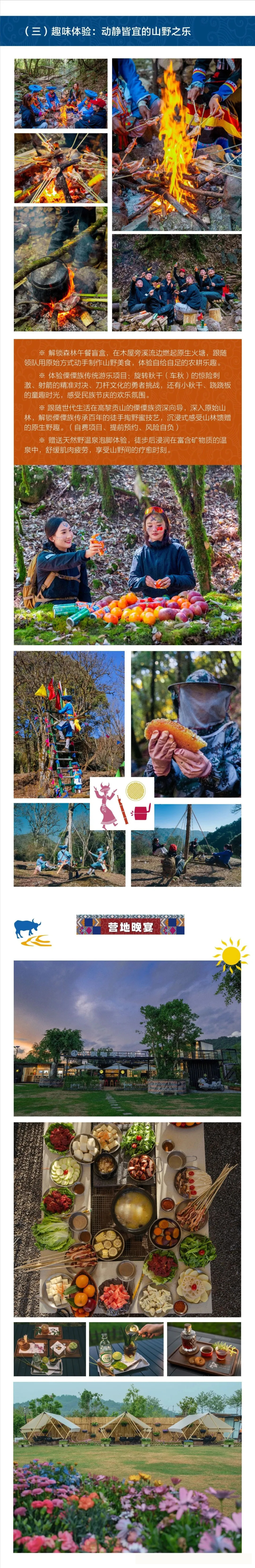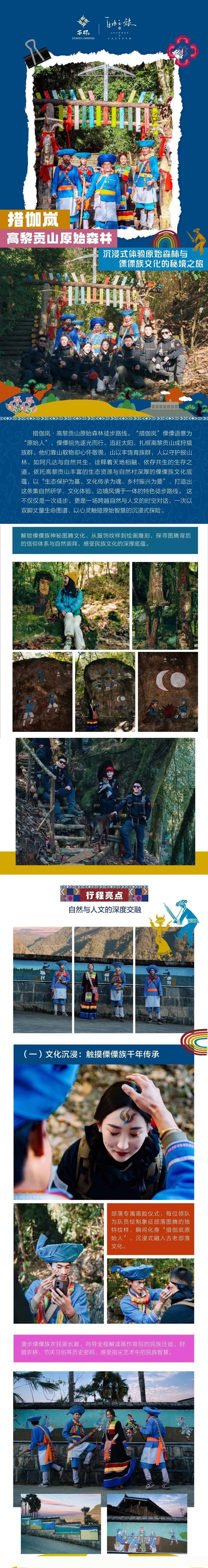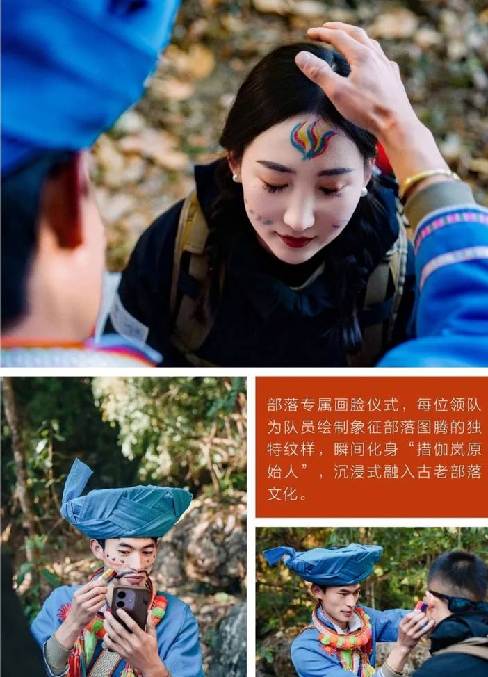 今天我们将安排傈僳族文化和徒步双重体验。8:00-8:30早餐,早餐后前往傈僳族古村落文化探索以农民画廊为纽带向导详解傈僳族历史、习俗与生活智慧然后前往徒步起点,热身后开始原始森林穿越+科普讲解聆听动植物科普,探访傈僳族旧时狩猎陷阱抵达高山草甸体验旋转秋干、上刀杆观赏“枯木绝处逢生”奇观,古树下休整时空树门探秘。午餐后穿越毛毛球森林,途经古道、千年古树、神秘树洞。在徒步过程中体验画脸体验:领队为队员定制专属部落画脸纹样开启文化沉浸之旅。