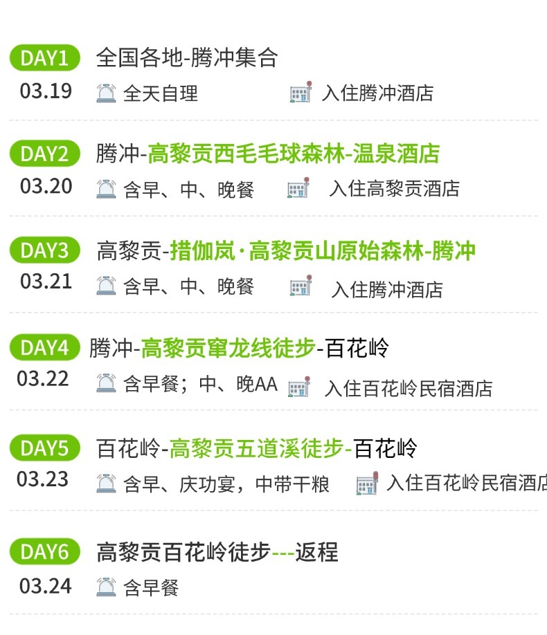 餐:早餐√ 午餐√ 晚餐√ 宿:高黎贡温泉酒店