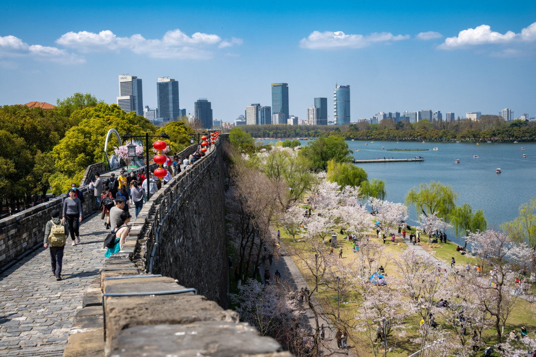 早餐后,开始了我们的南京citywalk探索六朝古都南京的春天。春季的鸡鸣寺樱花大道,边赏樱花边徒步,也可以来到明城墙探幽,寻找别具特色的茶社﹣台城书房,边品茶香边看书,边抚摸着明城墙砖边倾听着玄武湖水拍打堤岸的声音,怡情养性。