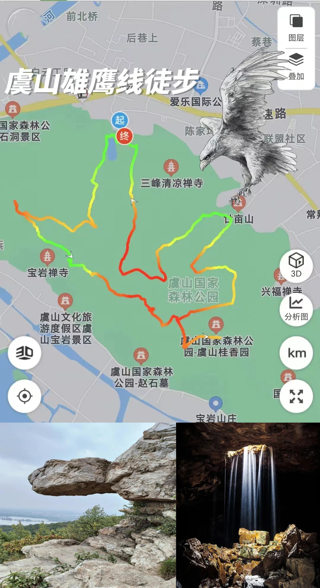 虞山雄鹰线是苏州徒步圈的一条“顶流”路线,因其在轨迹图上形如一只振翅的雄鹰而得名。
