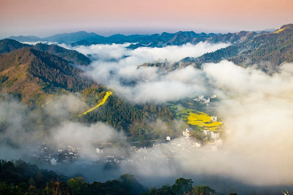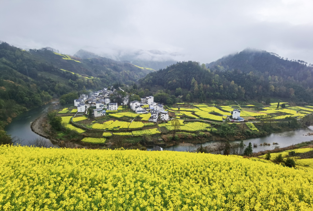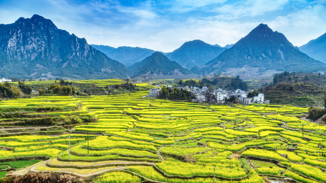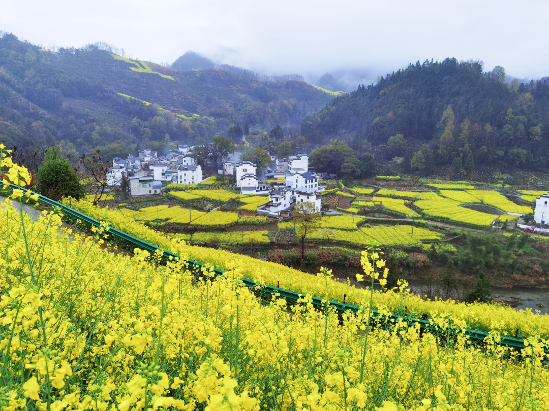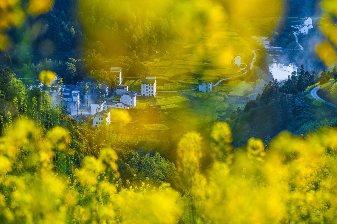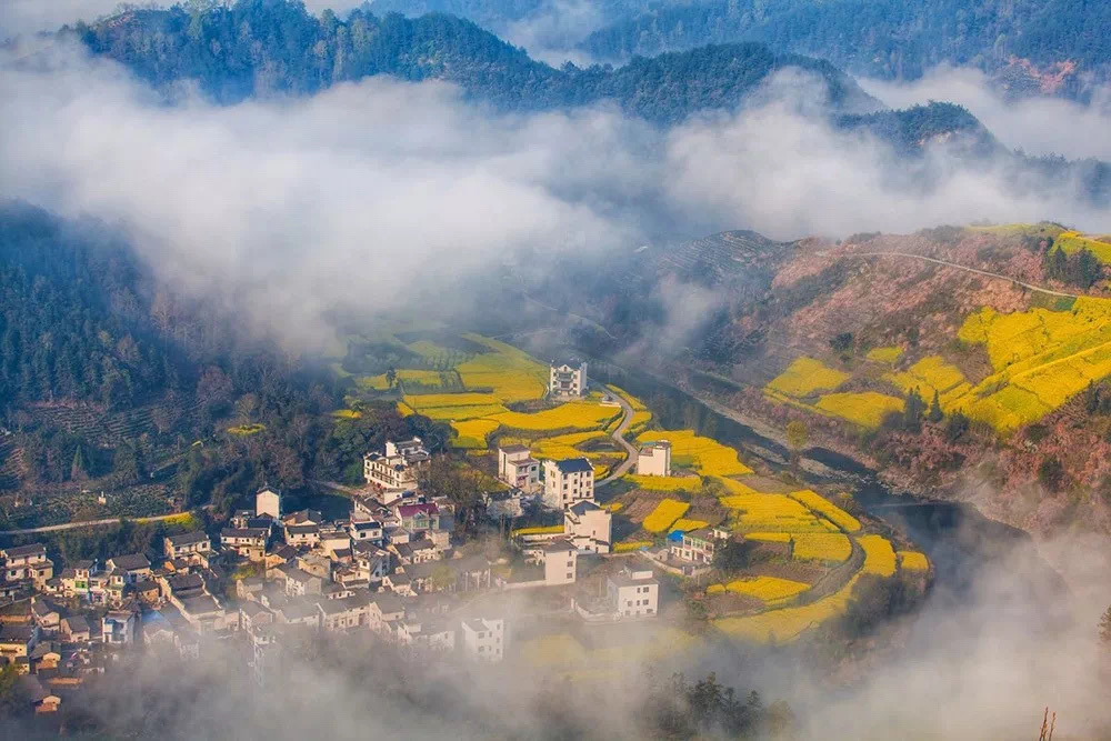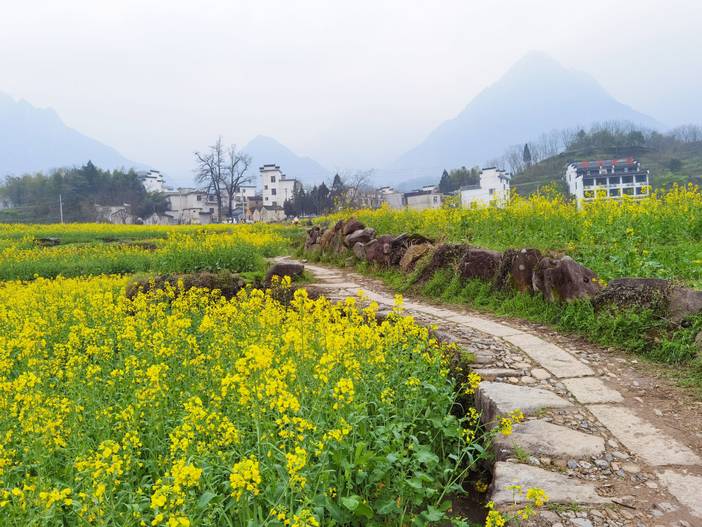 漫山遍野盛开的油菜花,与徽派民居交相辉映,犹如一幅徐徐展开的中国画,充满了乡村韵味,是不可多得的赏花秘境。