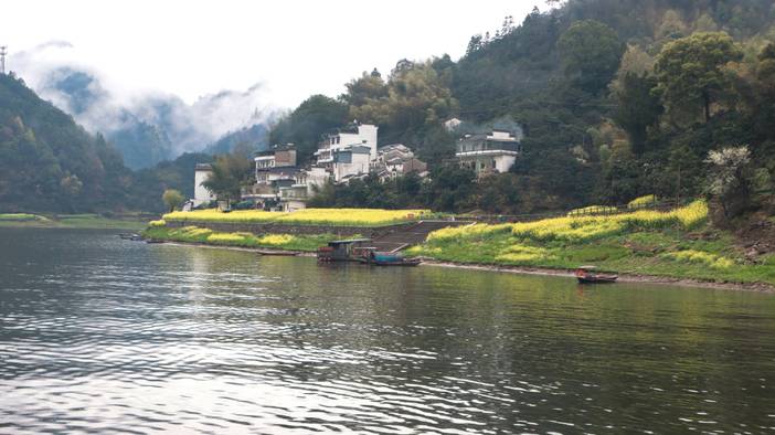 油菜花时节的新安江,漫山遍野的油菜花,桃花,盛开地如火如荼,一片生机勃勃的样子。青瓦白墙的徽派建筑,这个季节它正与山色对比分明,气息彰显着独有的意境美。