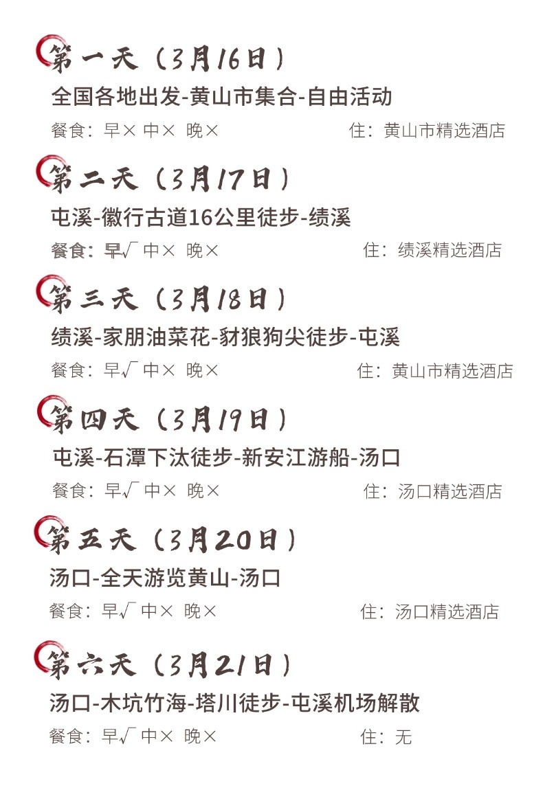 预计下午三点半游览结束返回屯溪市区解散,想继续留在宏村玩的亲也可以提前预定宏村的民宿哦~