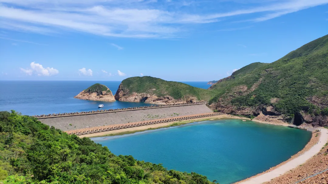 08:30 集体摩星岭徒步下山约15分钟,前往起点万宜水库东坝摄影【联合国地质公园】,打卡麦径必去的景点,麦理浩径灵魂封面--【东坝】、【破边洲】;