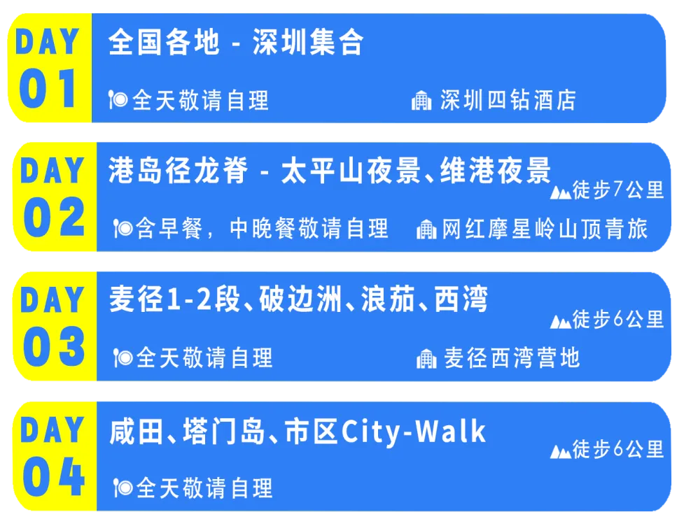 注:因香港住宿比较紧缺,如青旅满房会安排香港其它香港市区酒店住宿,如需了解当期住宿可咨询客服,住宿都是精品优选。