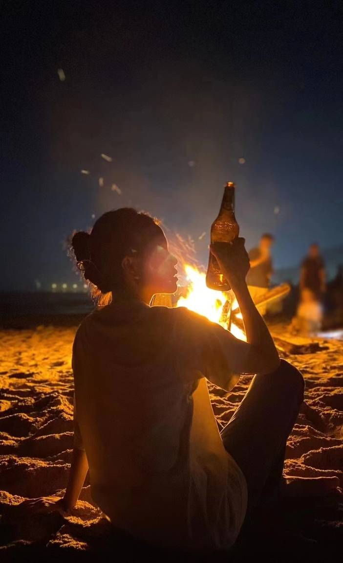 来到沙滩怎么能少了烧烤、啤酒呢。