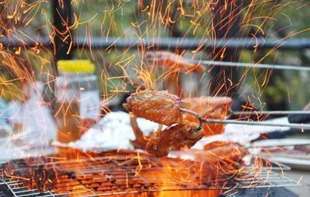 十个人为一个小组,然后大家分工洗菜,串菜,烧烤。