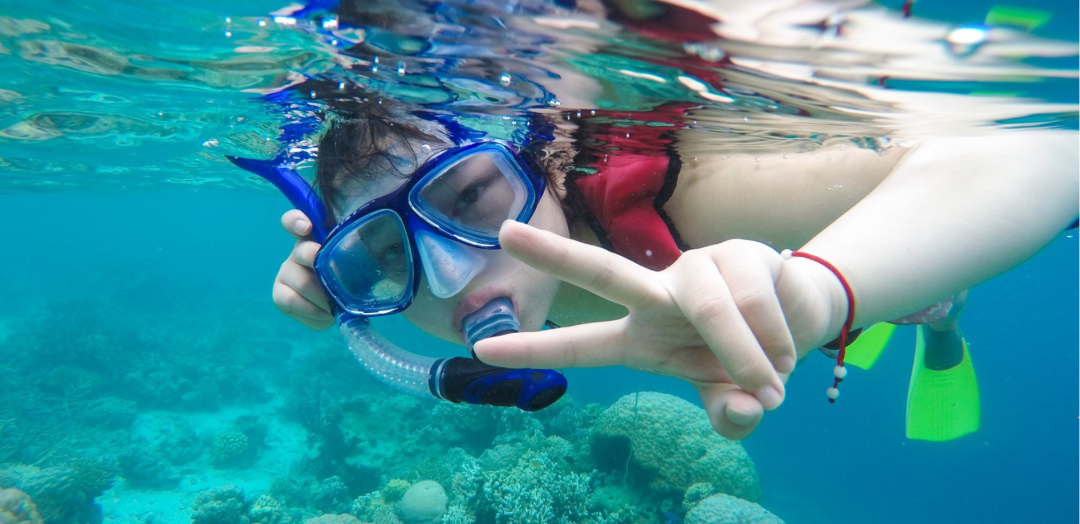 09:15 步行15-20分钟抵达浮潜沙滩【体验浮潜】,浮潜下去抓海鲜并且欣赏海底世界的徇烂多姿(尽量穿着长衣长裤下水,不浮潜的小伙伴就在营地帐篷(酒店)休息,注意:海水的清晰度、水位的高低,浪大浪小都是不可控的,都会受天气影响,潮汐影响,风浪影响