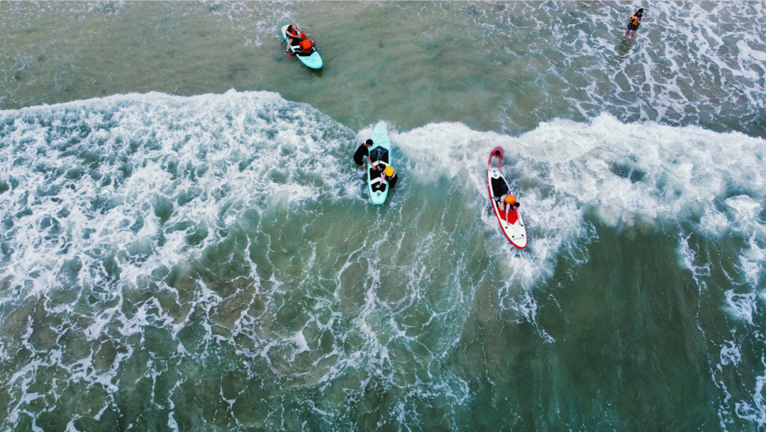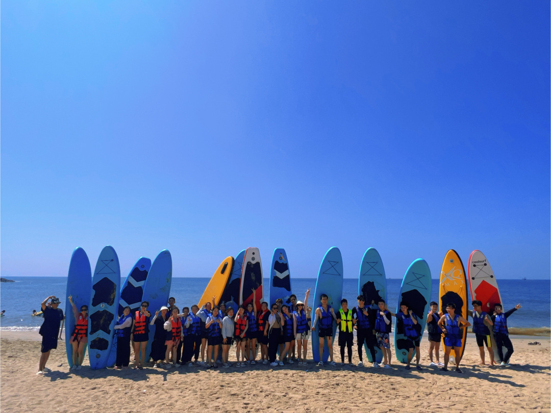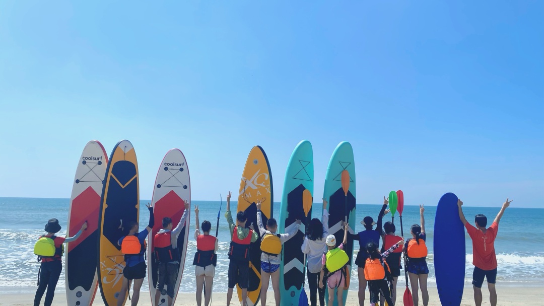 15:00 扎营结束,领取救生衣和冲浪板然后就可以去【海上冲浪】或者去【划浆板】,2-3人一块板有轮着玩(也会发放赶海小工具给到大家在沙滩上赶海)。