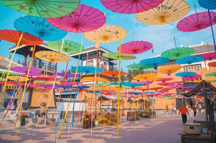 国潮文化艺术节围绕“好心有福气·国潮文化艺术节”为主题,新增2500平方米园内空间,同步在中国第一滩增设演出舞台,带游客体味不一样的国潮文化。景区以传统文化为根本基调,南北朝隋唐古建筑为背景,最大程度还原古城盛景。