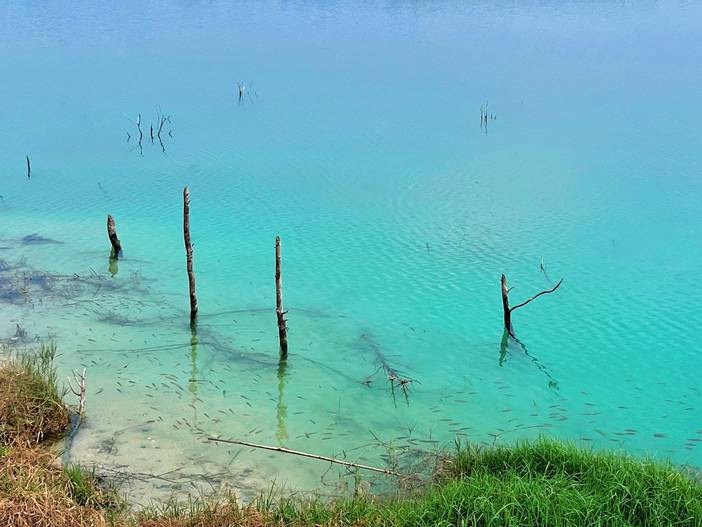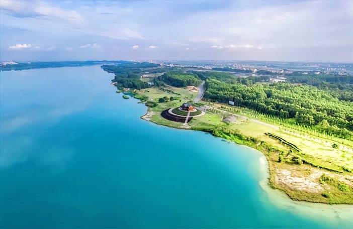 08:30 抵达露天矿景区后,这里的湖水清澈见底,旁边还有一些拍摄的小道具等,随手拍大片,喜欢骑行的小伙伴也可以沿着湖边骑行;