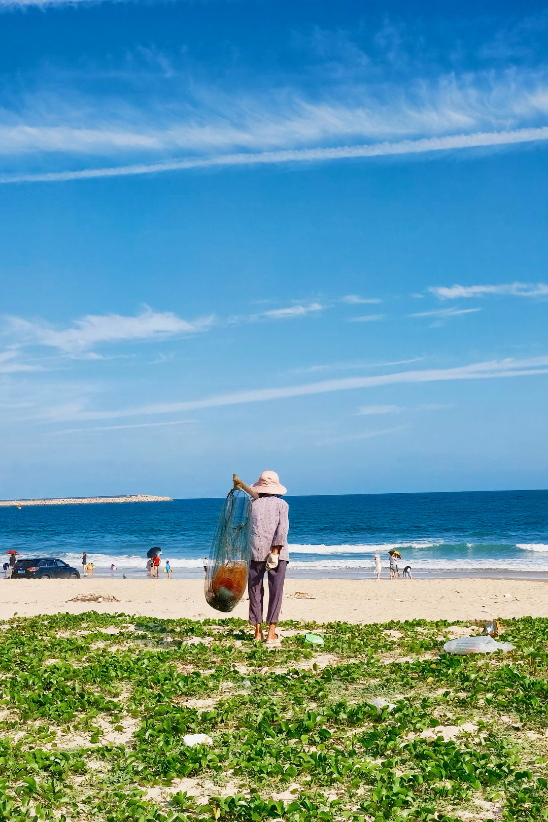 由于这片海湾尚未开发,海水尤为干净,在太阳的直射下透出种晶莹剔透的绿。沙滩平软而细,海水浸过的沙滩显出纯粹的米白色。