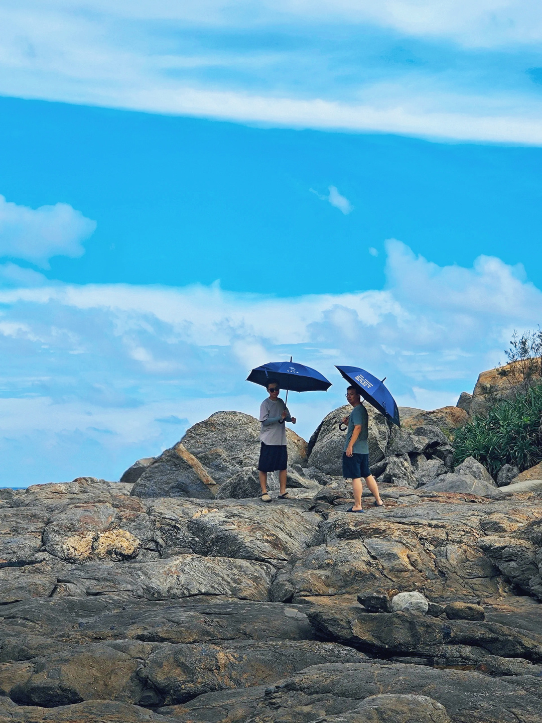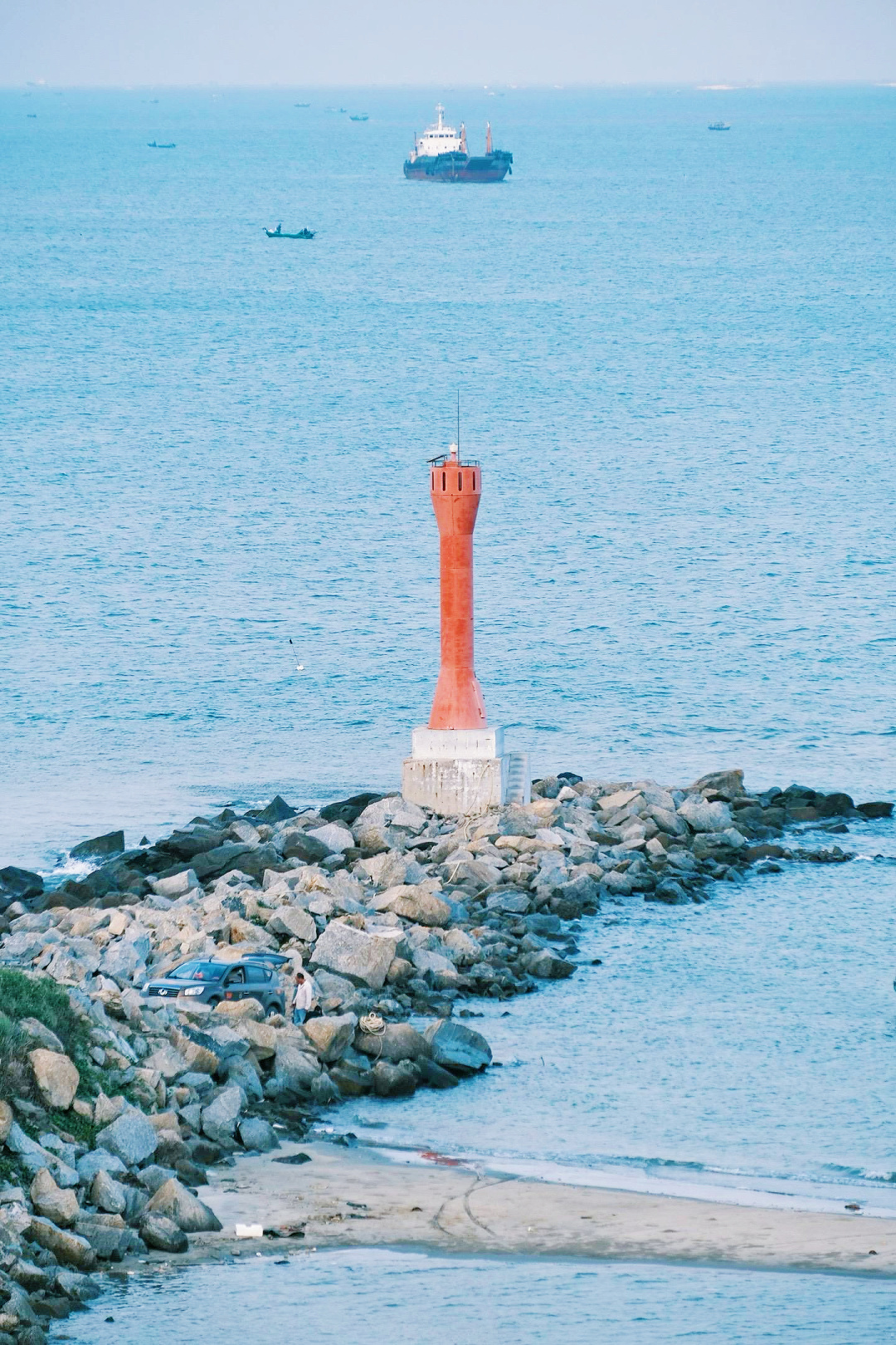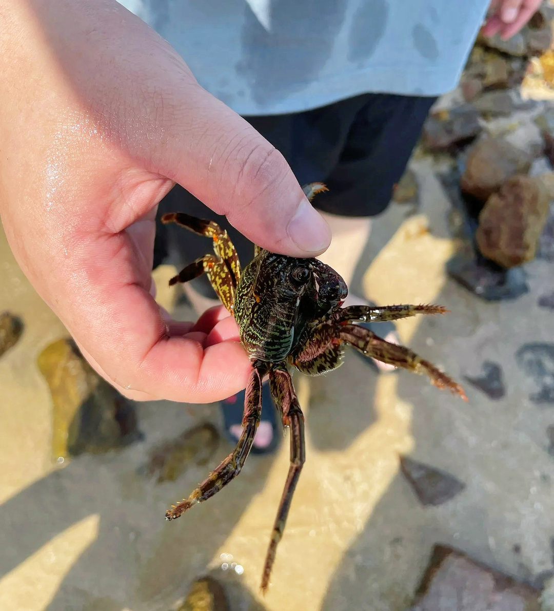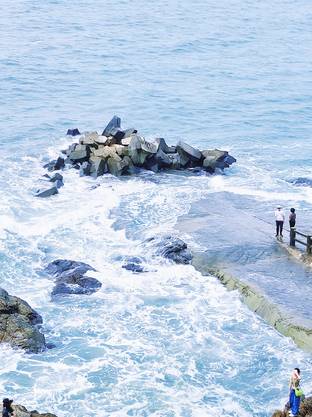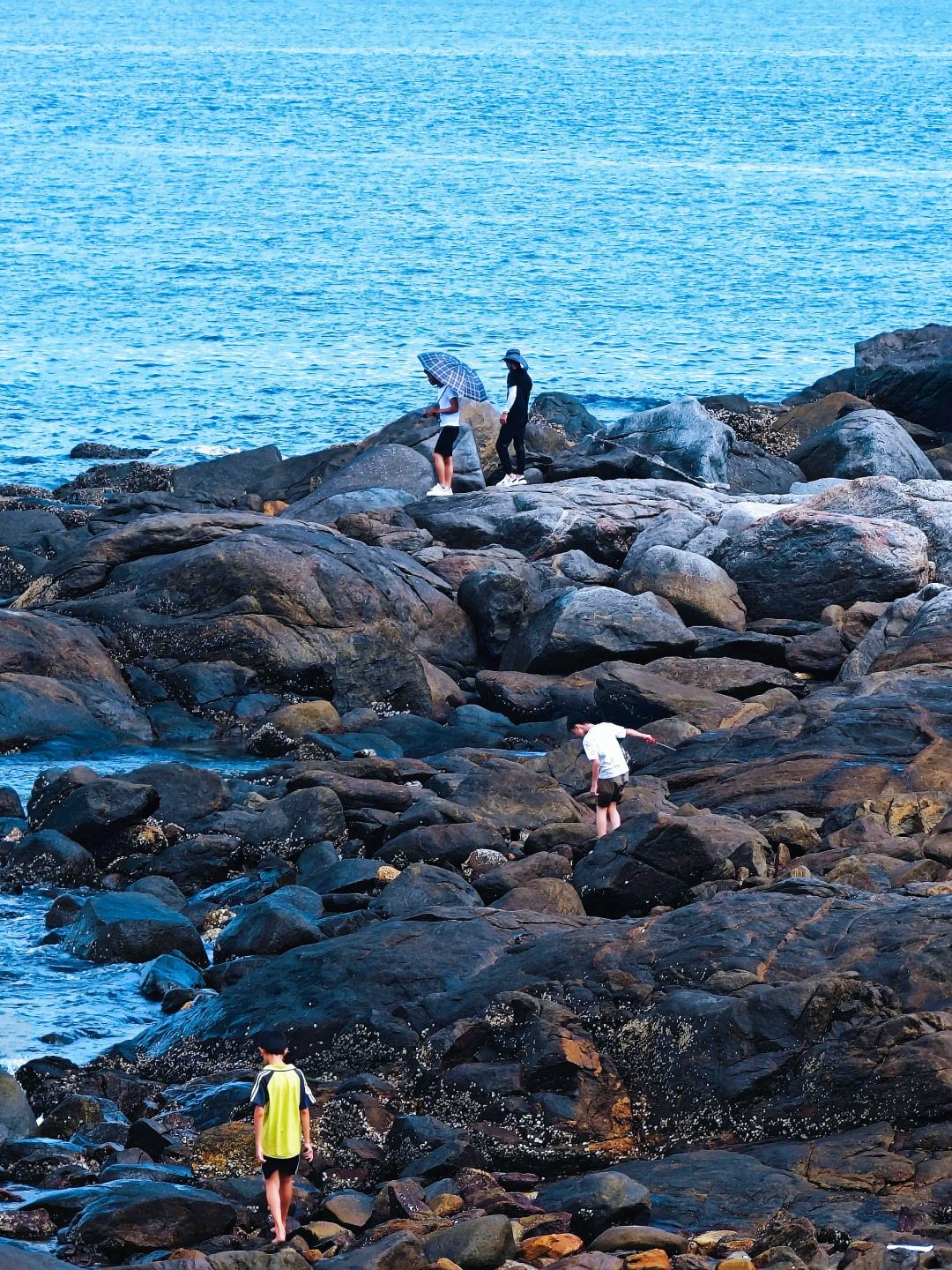 在灯塔旁边有着很多天然的礁石立在海岸边,大大小小不一而同,在石缝中有着很多“海精灵”,当地人很多都是靠赶海挖生蚝、花甲、白贝、捕鱼为生,可见这里的海产品之丰富。