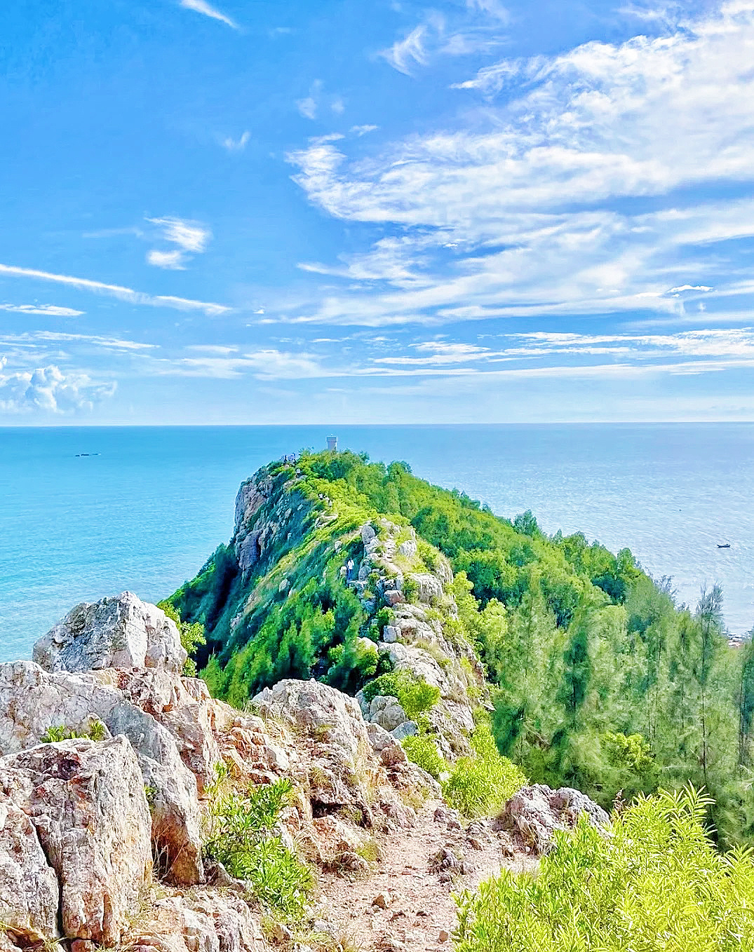 沿着观海栈道一路攀登上峰顶的观景台,在那伏身俯视山林和海岸漫长到不见天际的大海。