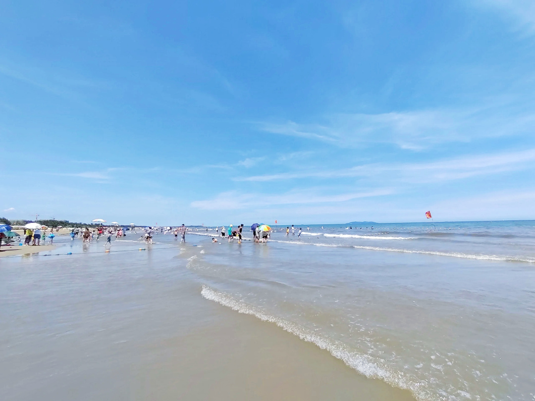 带着家人来这柔弱的细沙踩在脚下咸咸的海水拍打着脸颊听风细语,观海弄潮,别有一番风味