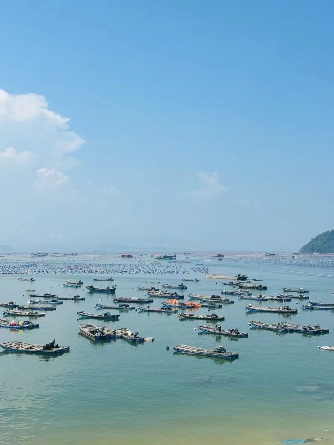 海天一色是小岛的常态,海面上漂浮着大片彩色生态浮球方阵,宛若彩虹,构成一幅靓丽风景线!这片彩虹牧场在南澳岛的走马埔村,触手可及的温柔与诗意,浪漫而又治愈。