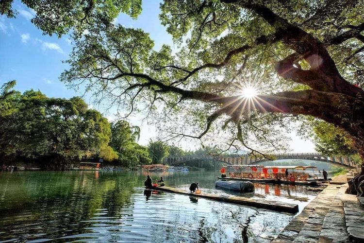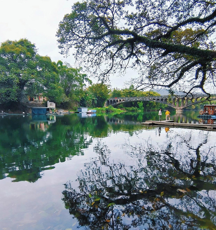 08:00 出发前往全国幸福百强县——鹿寨县,前往游览中渡古镇,隐匿千年的中渡古镇依旧保持着原有的风貌,古树、古桥、古建、古街巷......走进其中,让人仿佛穿越历史,时光也慢了下来。江边的榕树有几百年的树龄,站在榕底下,与古桥合影,一种江南水乡美韵表现得淋漓尽致。