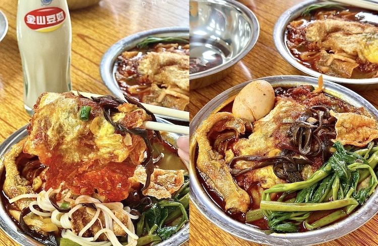 鲜滑爽口的米粉酥脆可口的花生浸饱汤汁的豆腐泡配上直击“灵魂”的酸笋滚入一勺加了红彤彤的辣椒油的螺蛳汤一口入魂,欲罢不能
