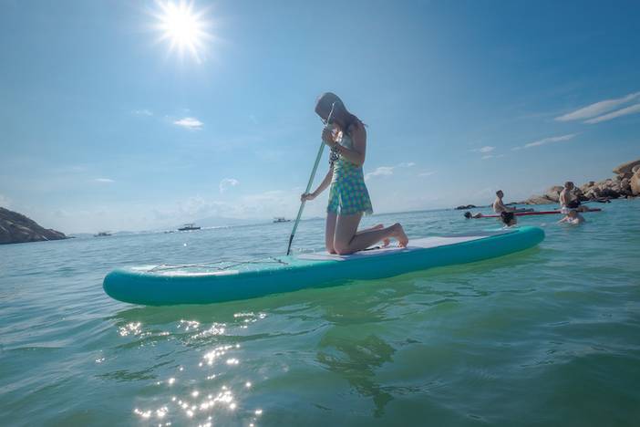 4.划桨板时不可靠近礁石,以免被礁石刮破板体。