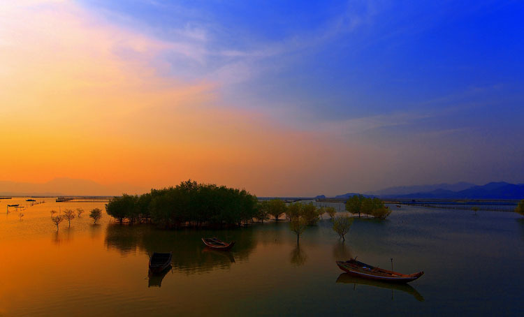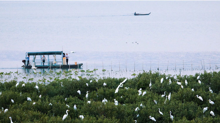 15:30 前往白沙村红树林湿地公园,可以在码头坐当地村民的渔船出海放网捕鱼(自费),可滩涂上捉螃蟹、可到白鹭亭观看白鹭归林、拍摄红树林里的白鹭,以及守候极美晚霞日落。