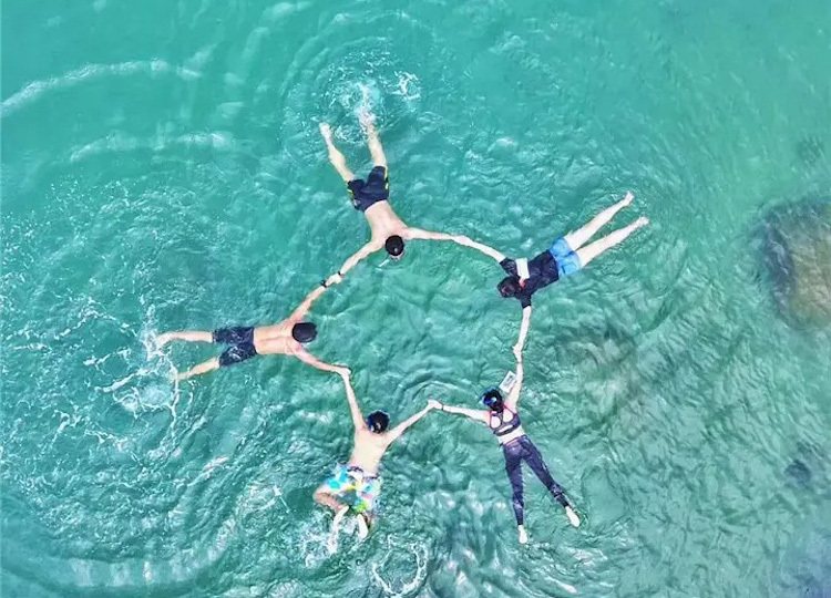 黛绿色的海水令人沉醉,潜入水中便能近距离观赏色彩艳丽的鱼群、珊瑚,说不定还能捡上几个海胆~