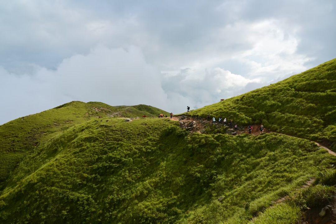 武功山烟雾迷蒙,充满了神秘和浪漫的气息。从金顶到发云界,全是高山草甸,碧波荡漾,而且延绵不绝,满眼的绿色,像是来到了内蒙古大草原,让人有纵马驰骋的冲动,感觉自己好像进入了天堂;武功山连绵不断的山坡,会把人爬奔溃。