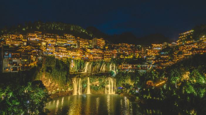 挂在瀑布上的古镇:白天静谧,夜晚璀璨,一步一景。