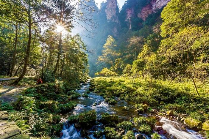 早餐后前往槟榔谷,徒步穿越丹霞幽谷、一线天、天生桥等地质奇观,全程轻装休闲。徒步结束后前往张家界武陵源,入住酒店休整。