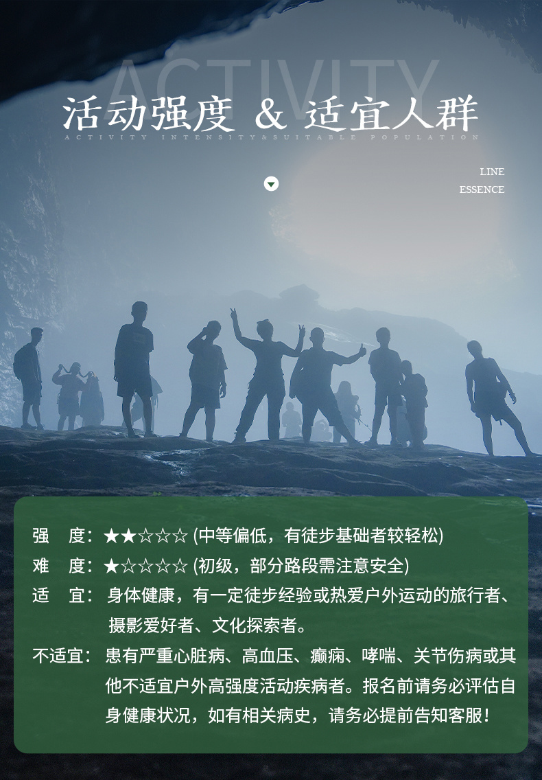 5. 参加本次活动,视为完全理解并认同活动计划,恐高、呼吸道疾病患者谨慎选择此行程,如因个人隐瞒隐患造成危险,后果由自负。